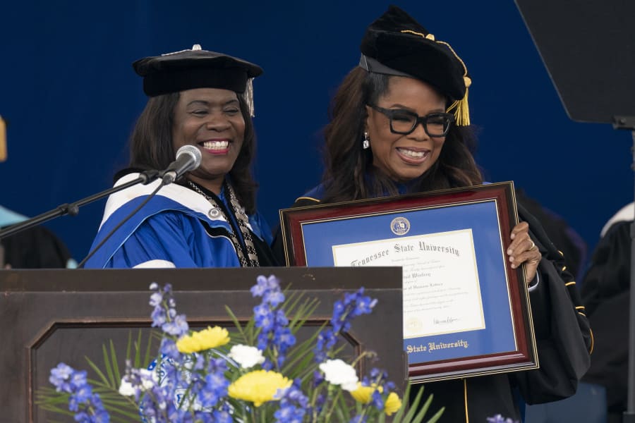 NASHVILLE, Tenn. – Oprah Winfrey delighted graduates at her alma mater Tennessee State University on Saturday, telling the story of how she fell one credit short of graduating as she launched the media career that would make her a household name.