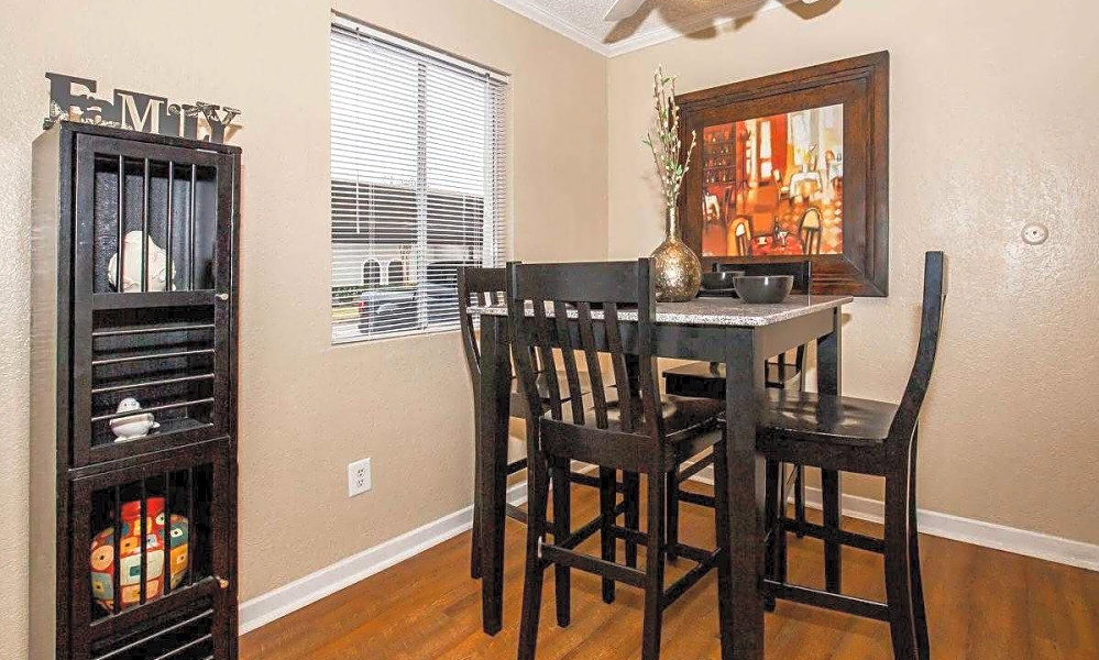 Next, check out this 745-square-foot one-bedroom, one-bathroom unit that's located at 3400 Woodchase Drive. It's also listed for $805/month.