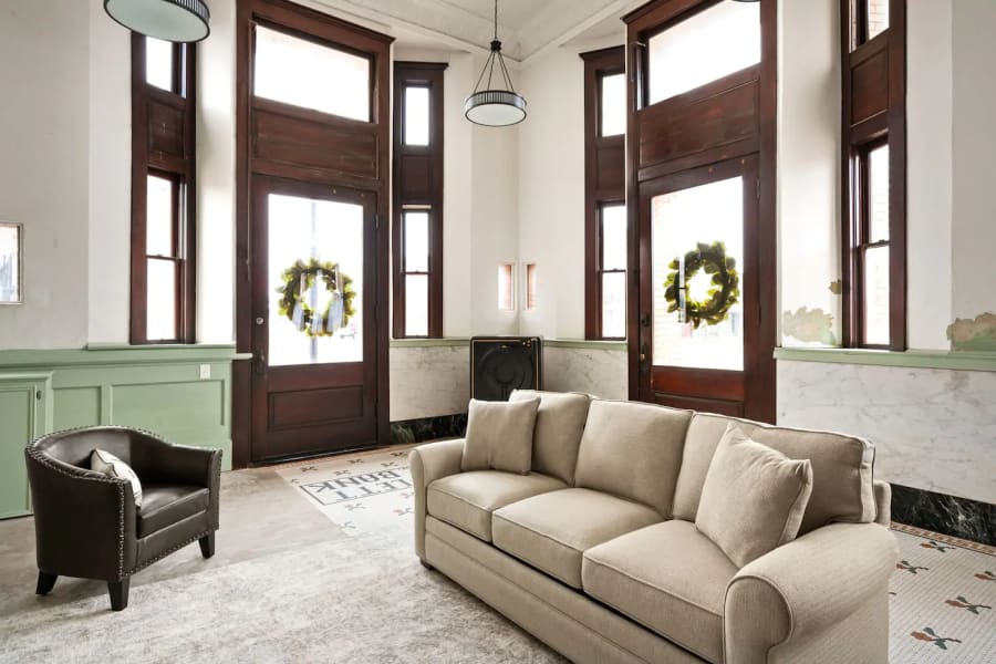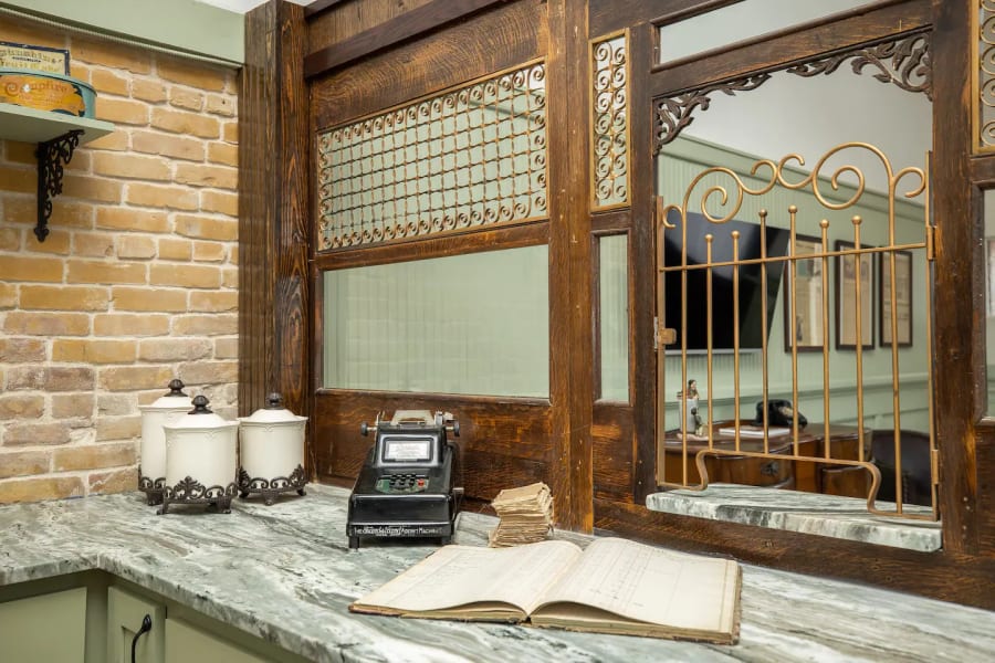 The luxe Airbnb got its start as The Bartlett National Bank, which opened in 1904. The business closed on a federally observed bank holiday in 1931 during the Great Depression and did not reopen again until the mid 1990s, when it operated for three years before closing again. Over the years, the building fell into disrepair.