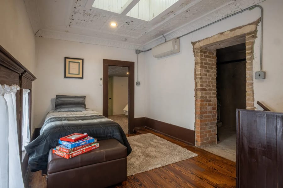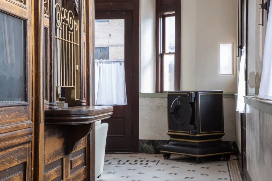 The luxe Airbnb got its start as The Bartlett National Bank, which opened in 1904. The business closed on a federally observed bank holiday in 1931 during the Great Depression and did not reopen again until the mid 1990s, when it operated for three years before closing again. Over the years, the building fell into disrepair.