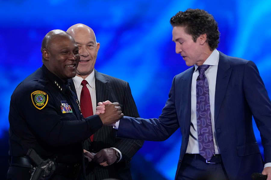Church leaders thanked the security staff and others who responded during the shooting and protected parishioners. Osteen invited Houston Mayor John Whitmire and police Chief Troy Finner to the stage and thanked them for their help after the tragedy. Attendees gave officers and security staff a standing ovation.
