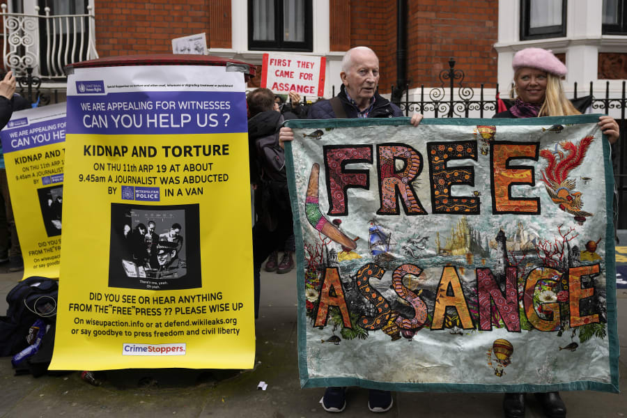 Assange’s supporters say he is a journalist protected by the First Amendment who exposed U.S. military wrongdoing in Iraq and Afghanistan.