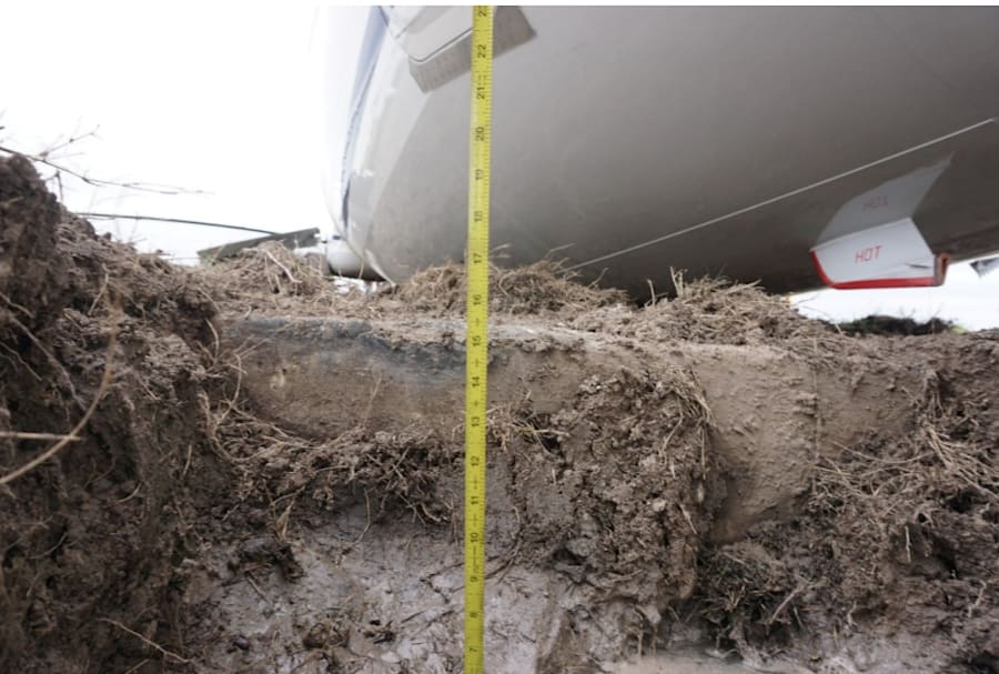 The plane skidding off the runway, also known as a runway excursion, caused major damage to the Boeing aircraft. NTSB investigators say the left main landing gear (MLG) was torn from the aircraft when it hit a concrete manhole in the grassy field, which is part of the planes design to prevent further damage.