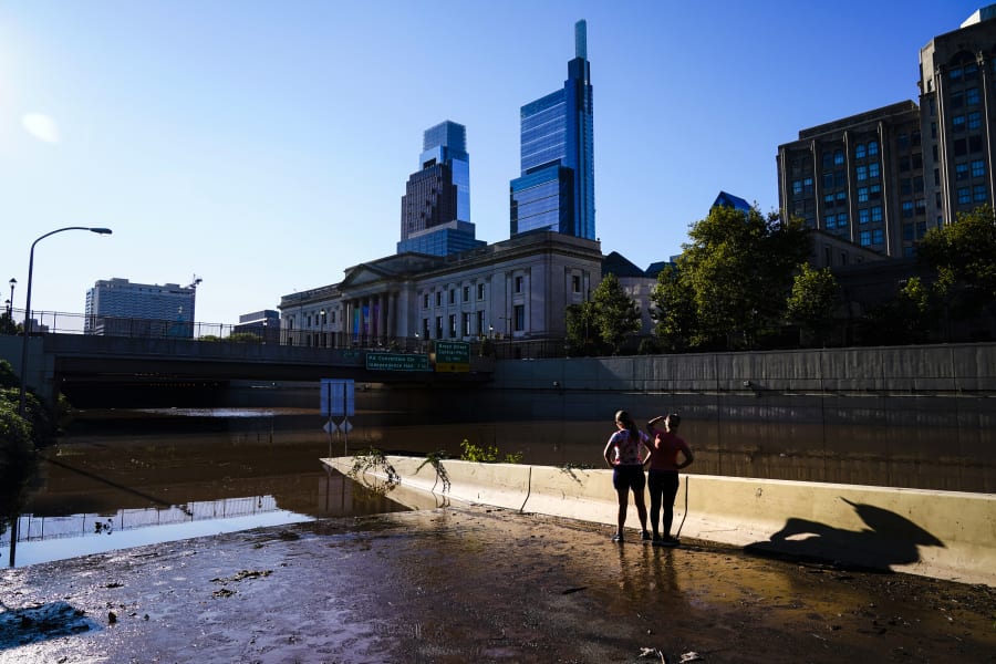 In Philadelphia, part of the crosstown Vine Street Expressway remained flooded after the Schuylkill River reached its highest level since 1902. An inch-thick (2.5-centimeter-thick) layer of mud was left where the road had dried.