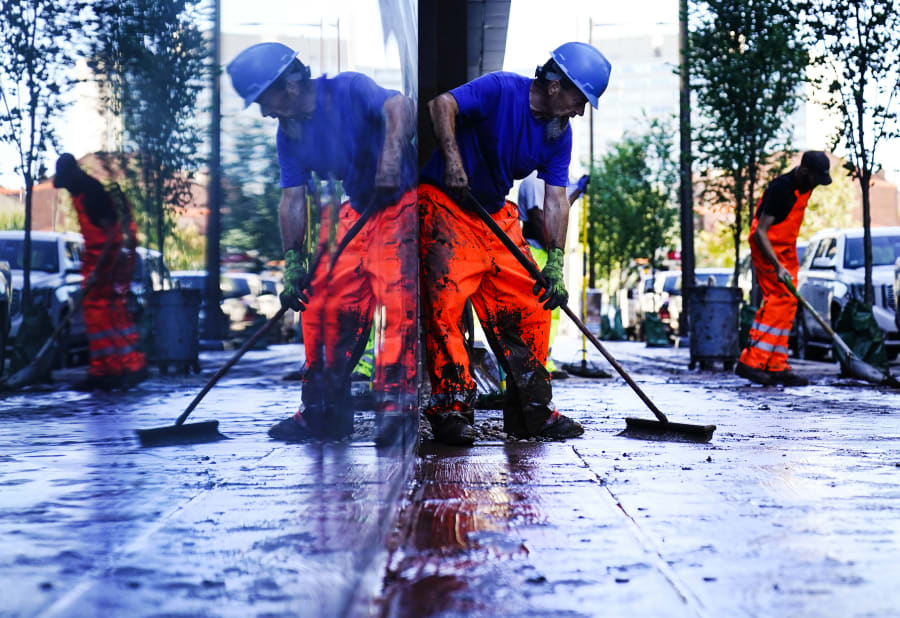 On Friday, communities labored to haul away ruined vehicles, pump out homes and highways, clear away muck and other debris and restore mass transit.