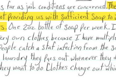 As far as jail conditions are concerned, they still are not providing us with sufficient Soap to wash hands. One 2 oz. bottle of soap per week. I wash my very own clothes because I have multiple times seen people catch a staph infection from the so called clean laundry they pass out whenever they decide that they want to do Clothes change out which isn’t that often. From what I’ve read and my previous experience with diseases and health care in jails, there’s most definitely a high probability of me getting this disease.