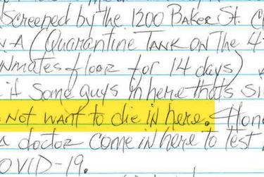 At one point in his letter, C wrote that he was worried about “unknowing carriers.” He was right to worry. This Wednesday, jail officials said that close to a quarter of inmates with positive coronavirus tests had no discernible symptoms.