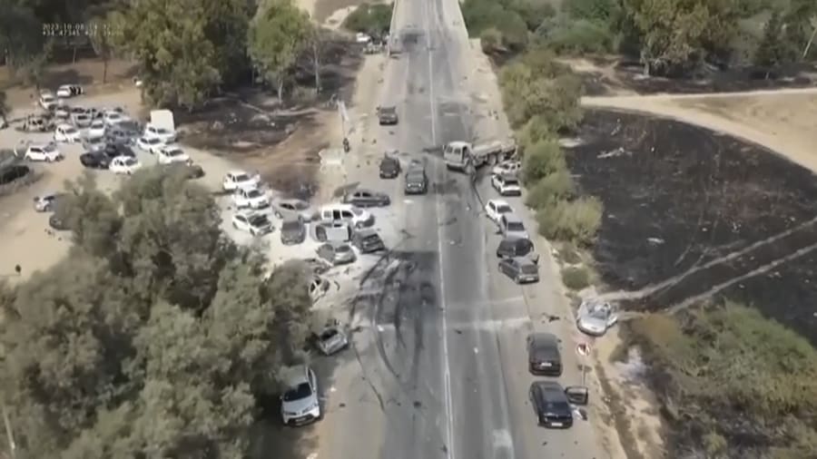 Festival-goers who managed to make it to the road and parking lot where their vehicles were parked found themselves trapped in a traffic jam, with militants stalking the cars and spraying those inside with gunfire. Drone footage of the scene taken after the attack and reviewed by the AP show chaotic lines of cars where drivers had attempted to flee. Some burned-out vehicles were flipped onto their sides, while others had bullet holes visible in shattered windows.