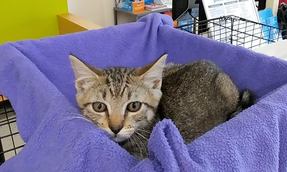 Ollie is a sweet kitten who is a bit shy of people. He is learning how to snuggle and cuddle at his foster home. Ollie plays hard with other kittens and has no problems with dogs.Â