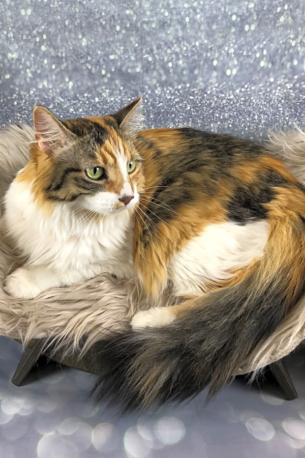 Bella is a charming female Maine coon and calico mix currently housed at Mission for Paws.