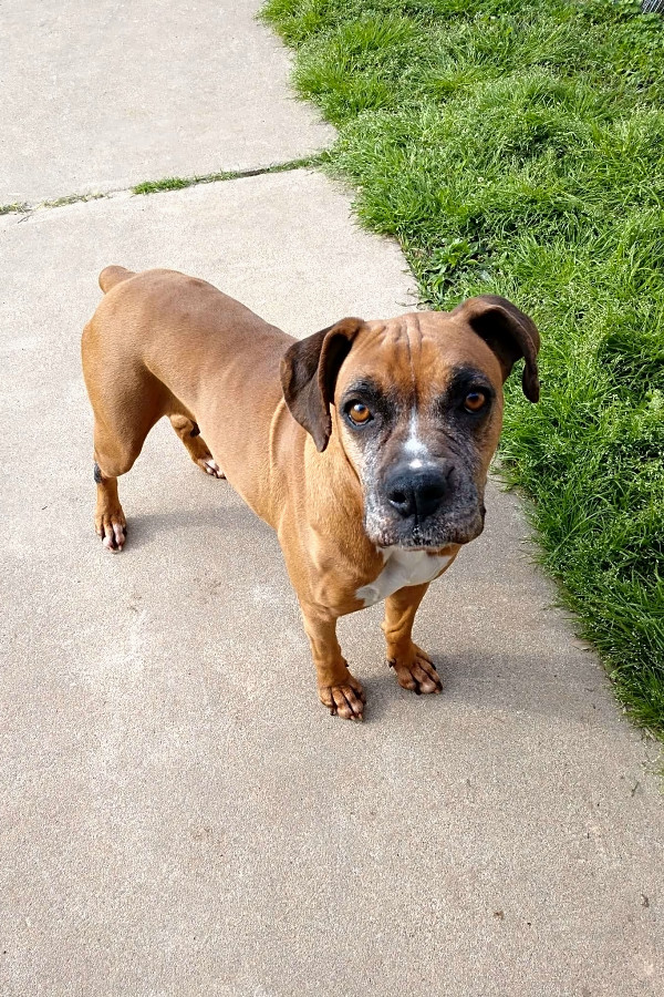 This girl is one sweet dog. She wags her heavy tail all the time. She listens well and is so well behaved.