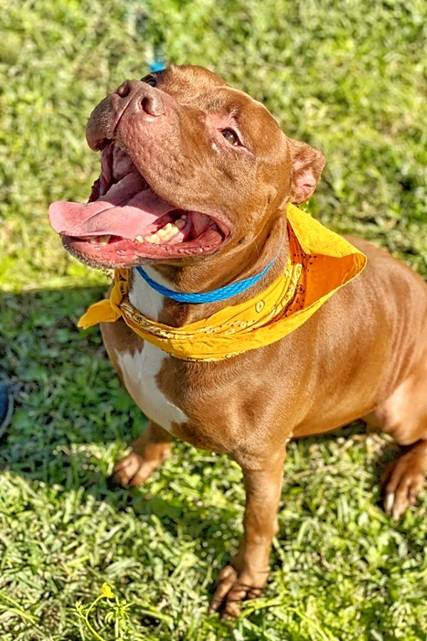 Once Polo gets used to his environment,his personality comes out and he is the best boy! He is active and loves attention. As you can probably tell in his photos, he loves to smile! He is well behaved and he is getting better at walking on a leash each day. He is not destructive in the house at all and has never had an accident inside. Polo is your typical sweet, happy go lucky pittie!