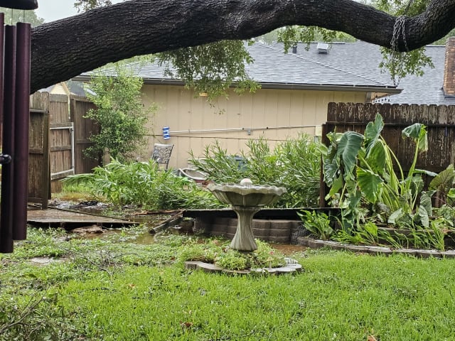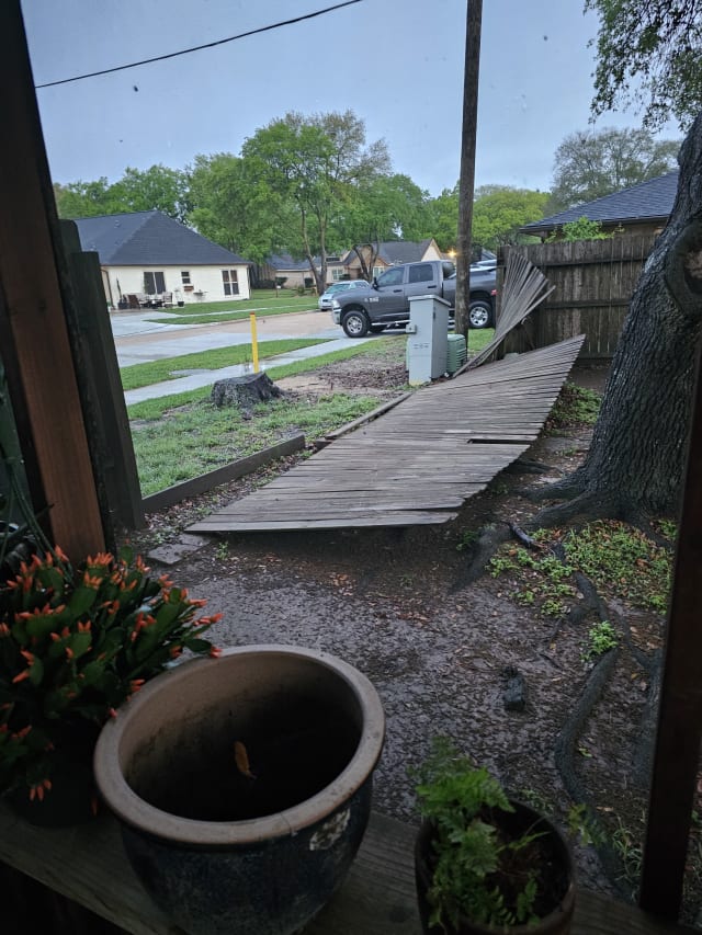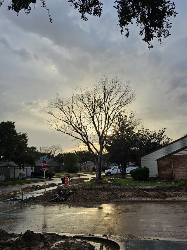 About the extent of the damage in Cimmaron neighborhood in Katy. Only lost power for a couple of hours. Eerily calm in the eye now.