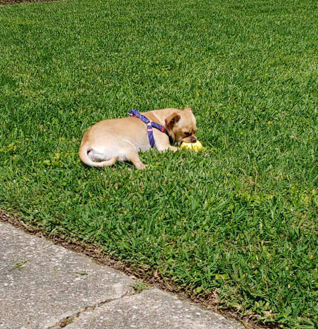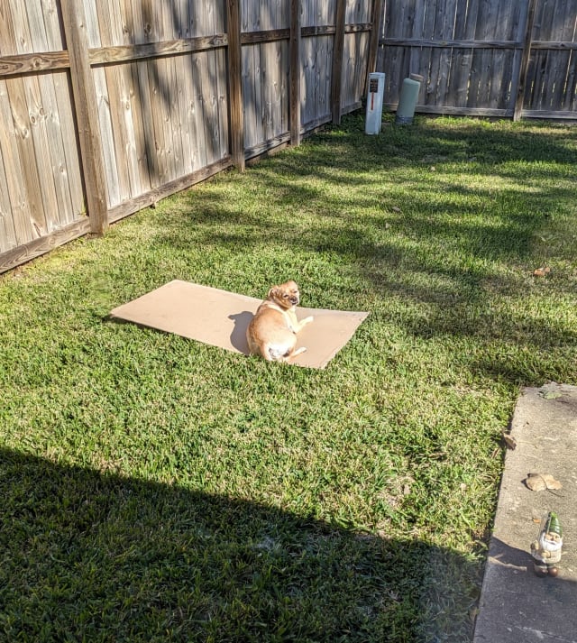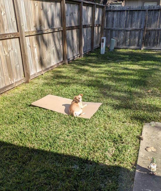 Boo enjoying the Hot weather in Cypress.