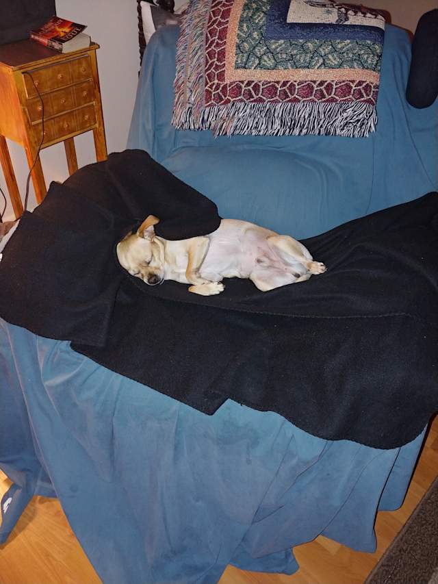Boo getting some rays before the Fireworks began.