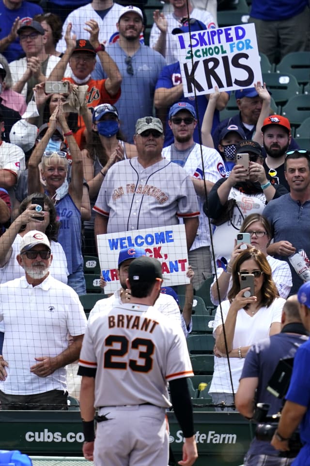 Bryant was traded to the Giants for two prospects at the July 30 deadline as the rebuilding Cubs unloaded marquee stars who were set to become free agents after this season. The 29-year-old got a standing ovation from the crowd of 29,439 during a pregame video tribute and again before his first inning at-bat.
