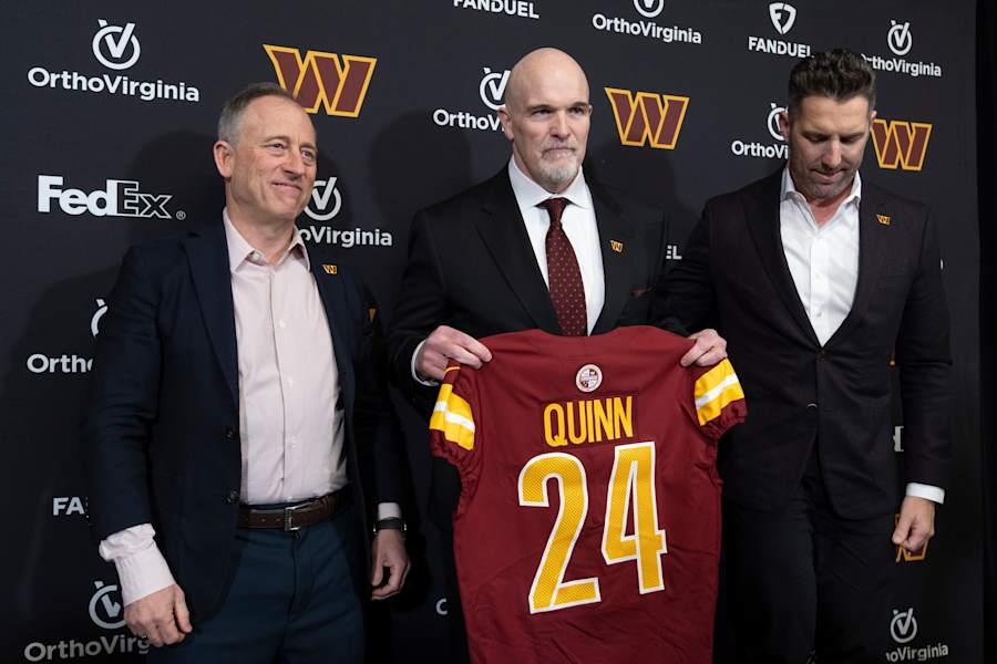 ASHBURN, Va. – Dan Quinn landed in the Washington area on Sunday night with wife Stacey and was greeted on the tarmac by general manager Adam Peters and his wife Jennifer.