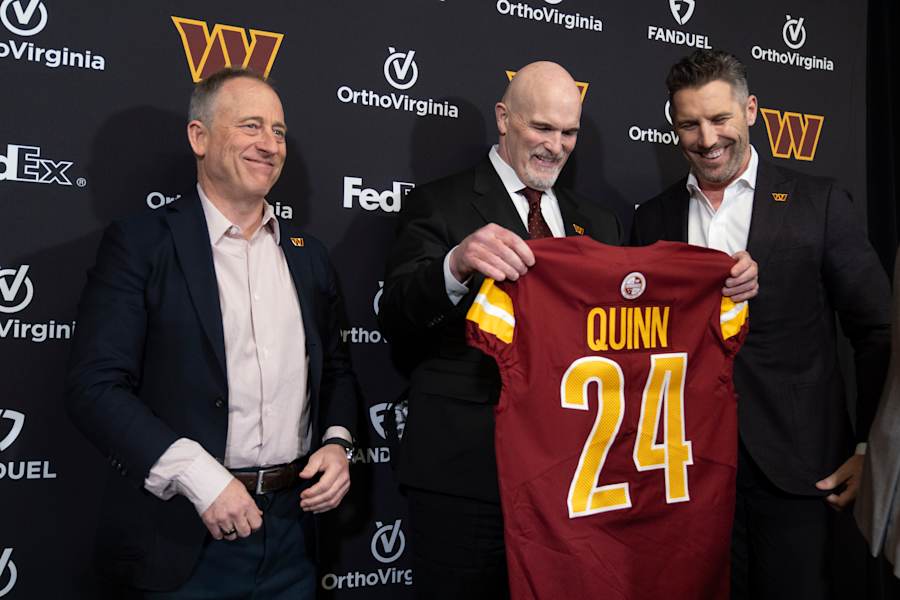 One thing Quinn confirmed Monday is Eric Bieniemy will not return to Washington after one season as offensive coordinator. Bienemy's future was murky after players criticized his approach and he interviewed for but did not get the Commanders head coaching job.