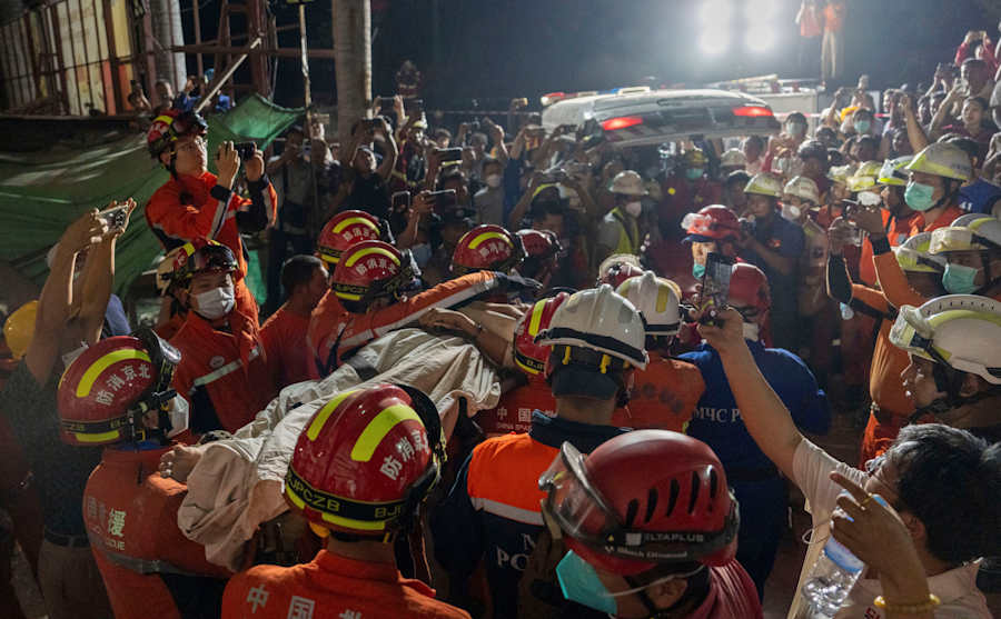 Power outages and spotty communications have slowed relief operations in Myanmar, where many are searching for survivors by hand in daily temperatures above 40 degrees Celsius (104 Fahrenheit). A lack of heavy machinery has slowed search-and-rescue efforts.